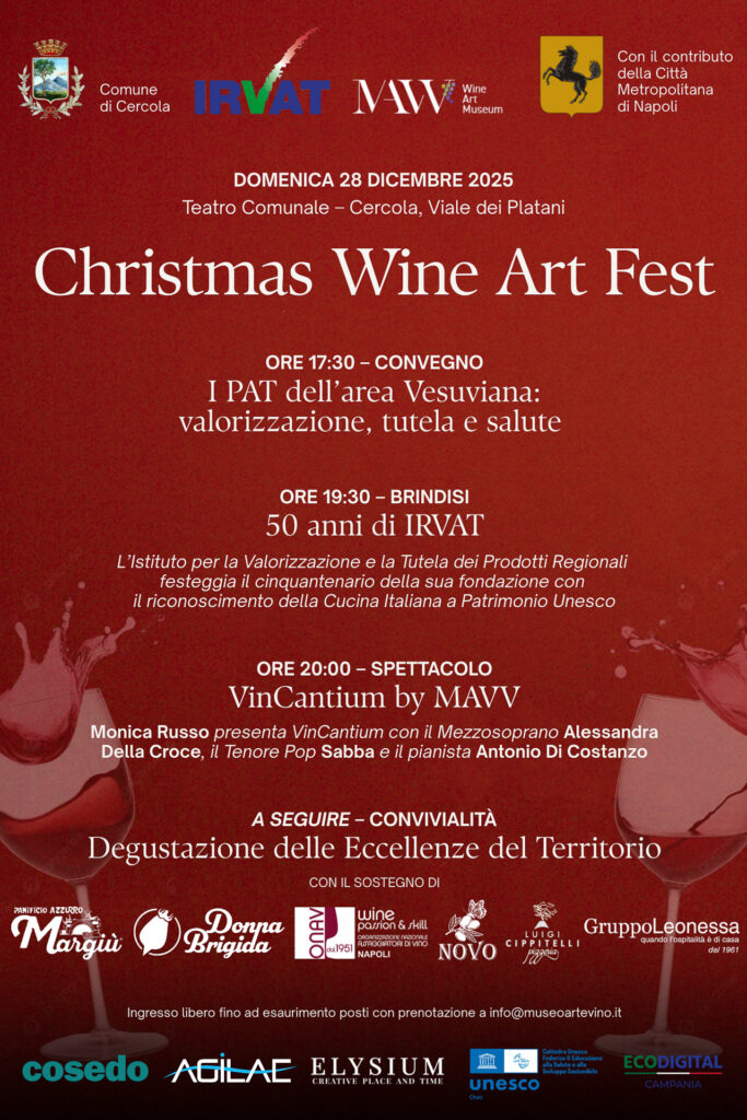 Il 28 dicembre 2025, il Teatro Comunale di Cercola ha ospitato il Christmas Wine Art Fest, una serata che ha saputo unire cultura, dibattito e spettacolo, mettendo al centro le eccellenze enogastronomiche della Campania come leva di identità e sviluppo.